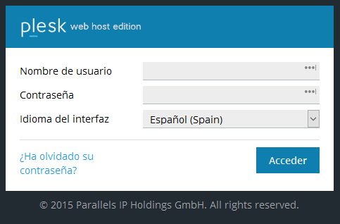 Ahora debería aparecer la pantalla de identificación para acceder a nuestro panel Plesk.