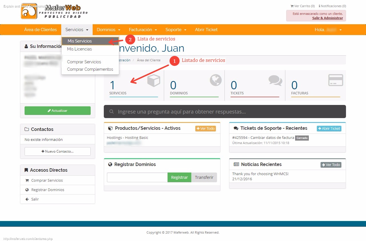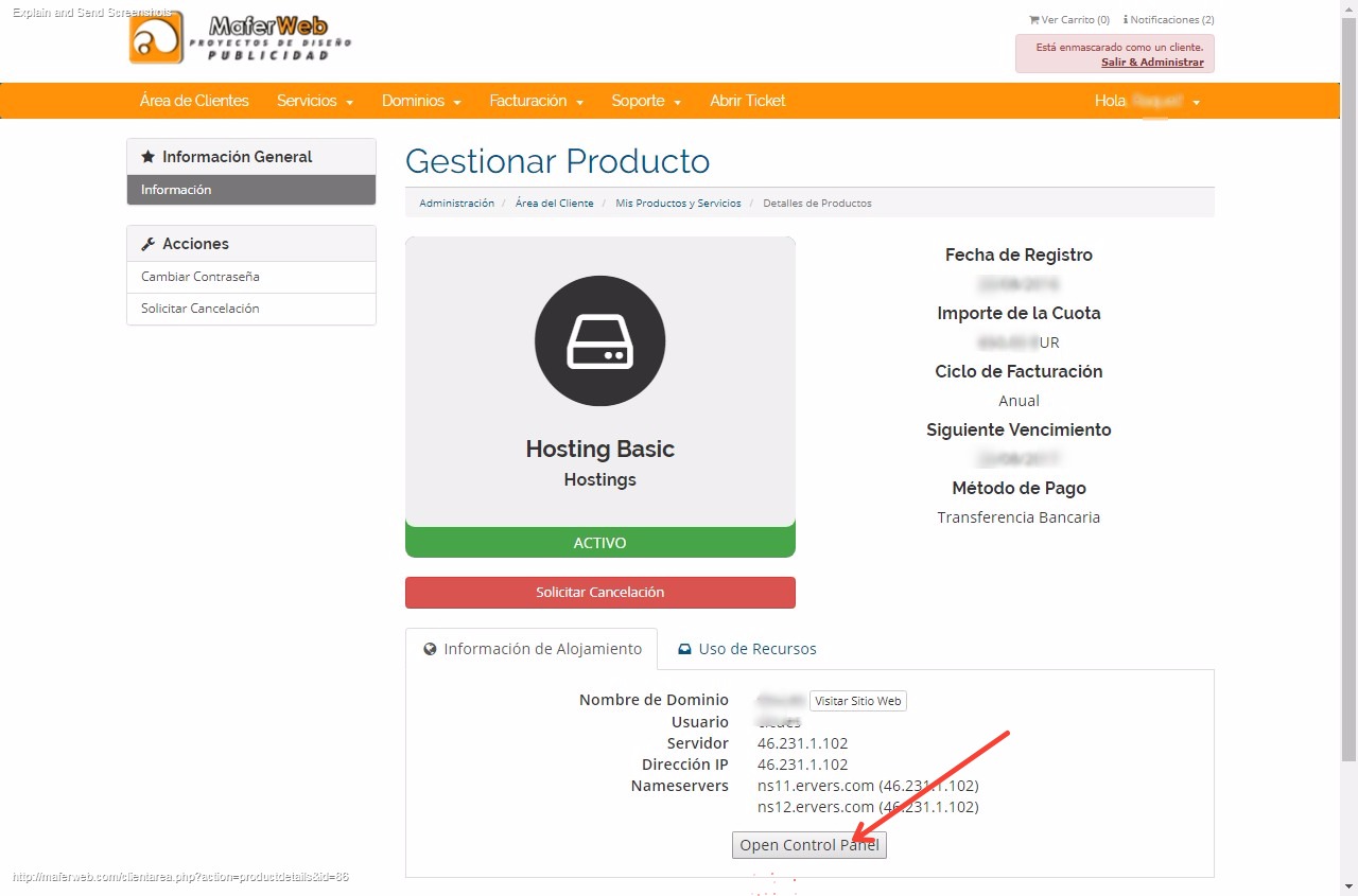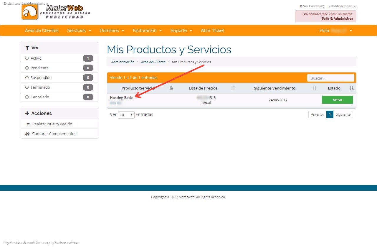 (Solo disponible para planes personal, profesional y premium)Paso 1. Entrar en el área de cliente